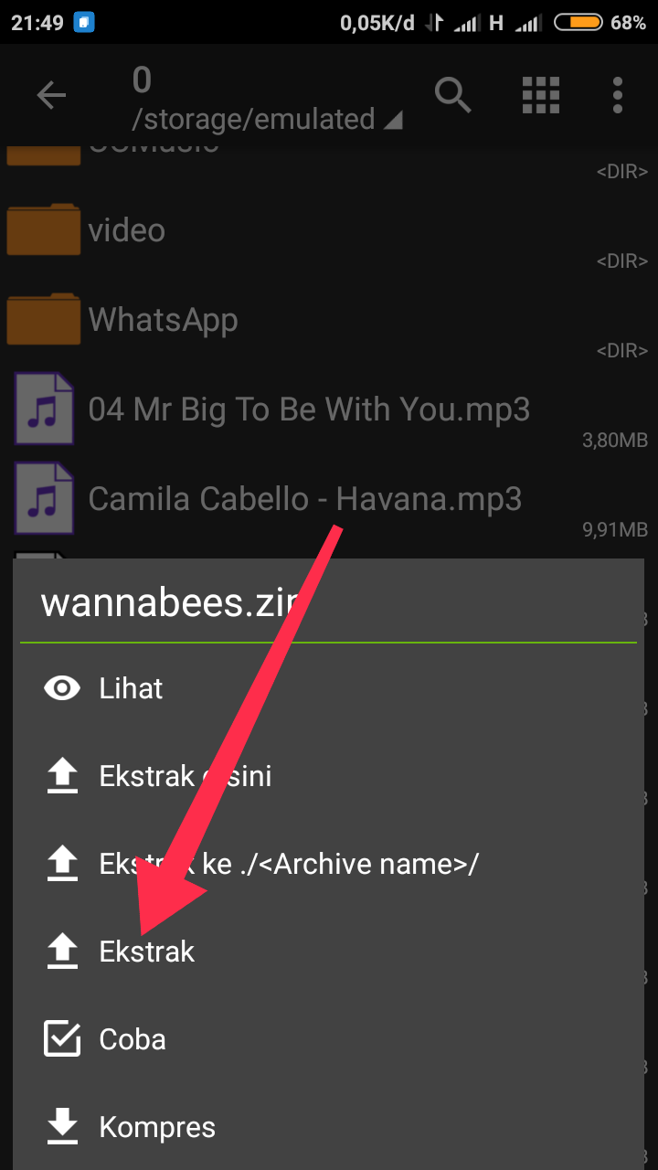 - Selanjutnya cari file yang ingin kalian ekstrak, entah itu file .zip ataupun file .rar nya.