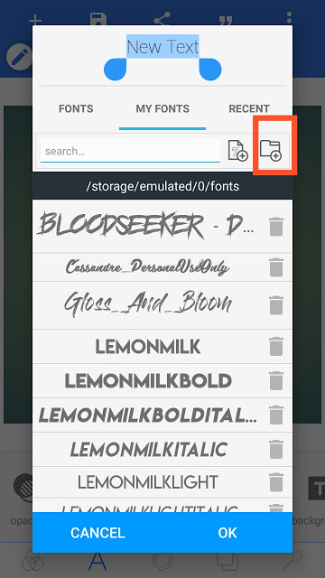 Kedua, tambahkan font yang sudah kamu ekstrak ke aplikasi pixellab