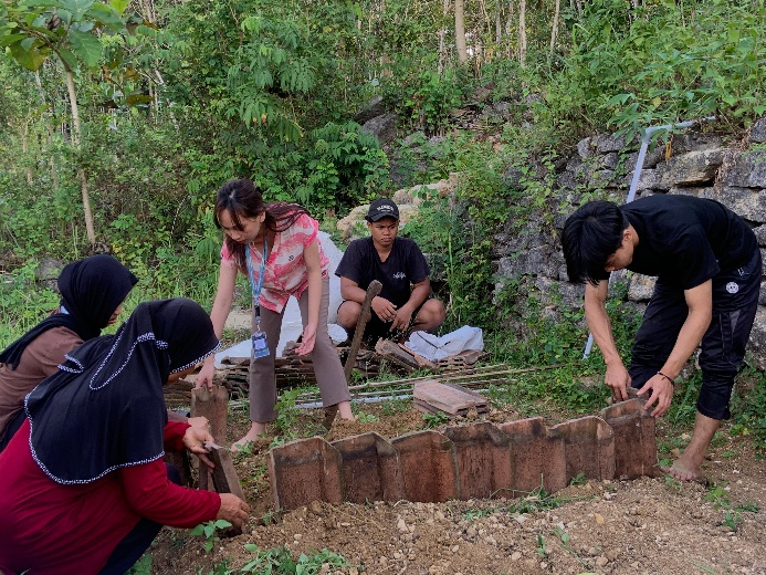 Proses pelaksanaan program dimulai dengan memberikan edukasi mengenai metode raised bed atau bedengan tinggi. Tahapannya meliputi pemilihan lokasi yang mendapatkan sinar matahari minimal enam jam sehari, pembuatan bedengan berukuran ± 2×1 meter dengan tinggi 20–30 cm menggunakan genteng bekas sebagai pembatas, pengisian media tanam dari campuran tanah gembur dan pupuk kandang matang (perbandingan 2:1), penanaman bibit sayuran seperti kangkung, bayam, sawi, dan tomat, serta perawatan rutin berupa penyiraman, pembersihan gulma, dan pemupukan berkala.
